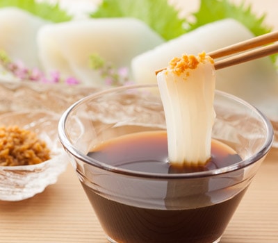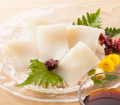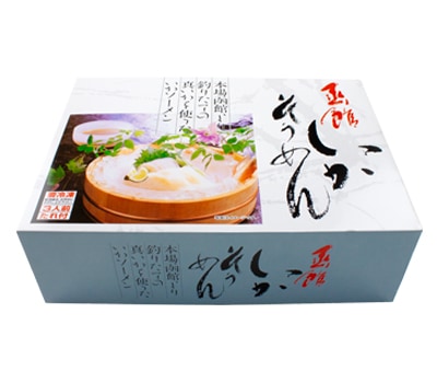 函館産の新鮮な“真いか”を使用したイカソーメンです。 食べた時の歯ごたえとのどごしは、“いか”のみずみずしさを伝えてくれます。 冷凍商品で化粧箱入りですので、ギフトにもおすすめです。