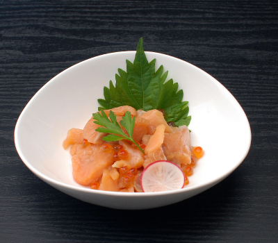 北のグルメのいくら正油漬は、素材選び・製法と手間の掛け方にこだわった看板商品。他の“いくら醤油漬け”とは違う究極の味わいです。一方、北のグルメの時しらずとろルイベは、北海道近海で獲れた大きいサイズの時鮭のみを使用した鮭ルイベ。それは幻の鮭 鮭児のルイベにも匹敵する脂のりで、一度食べたら忘れられない味わいです。この2種類を掛け合わせて誕生したのが、時鮭親子漬です。いくら正油漬がもたらすプチプチの食感と、脂のりの良い時鮭のルイベが美味しいハーモニーを生み出しております。