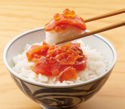 「おやじさんの天然紅鮭刺し親子漬」は、厳選された天然の紅鮭を使用した贅沢な一品です。新鮮な鮭の刺身と、いくらが絶妙に組み合わさり、豊かな風味と食感を楽しむことができます。