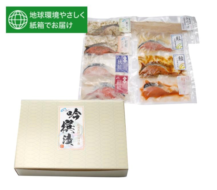 「北のグルメ」が自信をもって作った「漬魚」のセットです。 どれも原料、味噌、加工にもこだわり、最高の旨味をお楽しみいただけます。BOX入りでギフトにもおすすめです。 【セット内容】 紅鮭塩糀・秋鮭塩糀・紅鮭バジル・真だらバジル・鮭山椒粕味噌漬・さけごま醤油漬・さけ明太子・真ほっけ山椒粕味噌漬 各1切 計8切入り