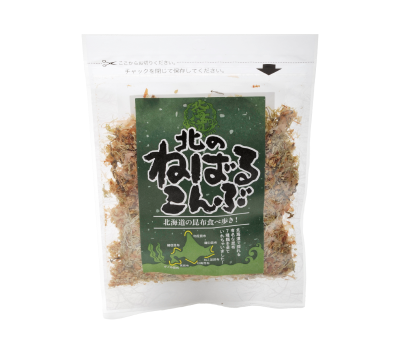 北海道各地の昆布をMIXし、昆布の粘りと旨みを引き出しました。 かつおぶし、ごまを加え、ふりかけやおひたし、そば、うどんにも。 お子様にも食べやすい味付けになってます。